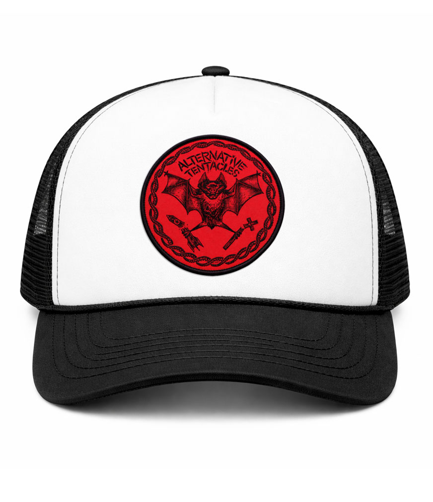 In 1984 my eyes were ripped open to hardcore music thanks to the compilation “Let Them Eat Jellybeans”. It was my gateway record into the dark underbelly of the most blistering and unusual music I had ever heard. I studied the album like it was a holy relic. The massive poster that came with it had addresses and grainy photos or art from each of the bands included, and it was my first taste of Dead Kennedys, Black Flag and Bad Brains. All 3 of these bands confirmed for me what new musical path I would take. I knew some of the bands on the compilation had released more music by the label “Jellybeans” was on, and so I began to explore the label feverishly. Pretty much anything that was on Alternative Tentacles I could depend on to challenge me and excite me. It was avery strange label which put out music which was very hard to describe or define. It was an artistic label, and had an aesthetic an taste that was unmatched. To this day Alternative Tentacles continues to put out bizarre and challenging music. They not only have top notch last in reissues (The Frantix, The Dicks, Really Red to name a few) but also continue to crank out some great current bands Death Hymn 9, Slim Cessna’s Auto Club, and any of Jello’s projects. The iconic logo for the label, as originally designed by the master Winston Smith has been lovingly reinterpreted with my signature Sharpie style. I could not be more honored to give this classic my own spin. Long live independent music and long live Alternative Tentacles. -Chris Shary