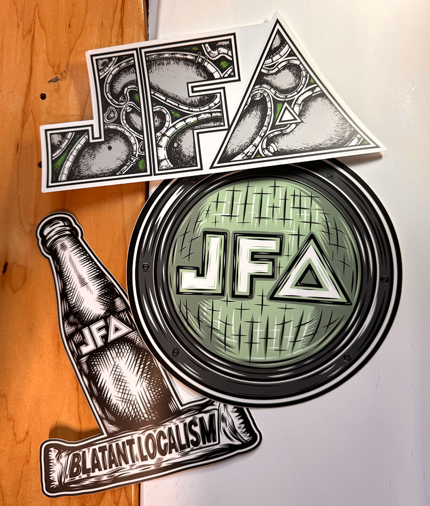 By popular demand: We’re happy to offer all the Jer Warren JFA designs as a big sticker set. Hopefully this will appease some folks who missed out on the last JFA sticker we did.