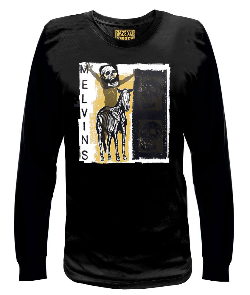 Here we have Thomas Hazelmyer’s take on the cover of The Melvins 4th studio album. The original cover painting for this record features another “take” on a sculpture from 1908. Couple this recycling of subject matter with this album’s storied title and legal history, and you’ve got a podcast waiting to happen… or not. Either way this is a killer record and a pretty great shirt design.