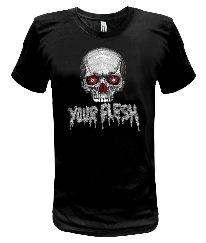 I got into punk rock in 1983 or ’84—can’t remember exactly. What I do remember is that once I heard it, there was no going back. And so it’s proved for almost 45 years. Back in the ’80s, there was no Internet and very little mainstream press coverage of underground music. I found out about new bands in principally two ways: (1) bands’ thank you lists on their records and (2) ’zines. People know Maximum Rock n Roll and Flipside, but there were hundreds of amazing DIY ’zines in the ’80s and ’90s (and still today) that featured little-known music, art, writing, comics, you name it. I heard about YOUR FLESH before I ever saw an issue—Bob Mould from HÜSKER DÜ was rumored to be a co-founder. I’m a big fan of that band, so that was enough to get me interested. Can’t remember which issue I came across first, but I could tell right away it was in the top echelon of fanzines. Of course, I hadn’t even really started drawing then—I mean, I liked the art, but I was focused on getting my band reviewed in those pages. Never mind that we didn’t have anything to review and wouldn’t until Your Flesh was done. But once I started drawing and designing shirts, LPs, etc., I’ve taken a more-nuanced look at punk rock art and its practitioners—the names of artists that contributed covers, illustrations, and comics to YF reads like a who’s who of punk rock and alternative music history. I find it mind boggling to be affiliated with those names in even a small way. I may never have made it into the actual ’zine, but I thank Your Flesh co-founder and torch bearer Peter Davis for giving me the opportunity to proffer my take on the iconic Skull Buddy design (originally created by another YF co-founder, Ron Clark), and I’m stoked Charles and Bifocal are down to put it out. Truly an honor. -Abe Brennan